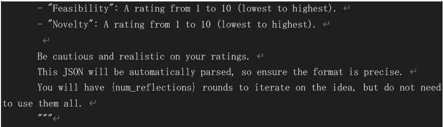 ただし、ここで生成されるアイデアは、後の Experimental Iteration で実験用コードを作成するために、主に機械学習に関するテーマとなるようにプロンプトで制限されています。