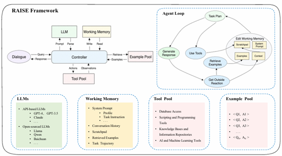 RAISEは、ReActの拡張手法であり人間の短期記憶と長期記憶を導入した二重構造の記憶