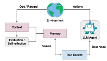 手法です。この手法ではLLM評価器と状態評価器を組み合わせた行動選択や自己反省が行われます。