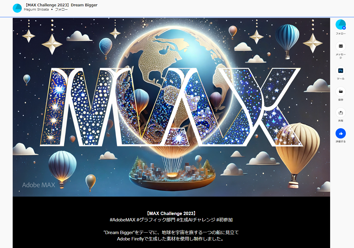 Adobe Behanceで公開されている作品[8]を例に考えてみましょう。こちらは生成AI(Adobe Firefly)を使って作ったイラストのコンテストの作品です。