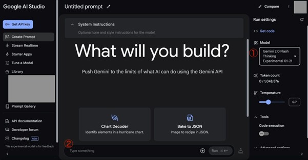 GeminiのThinkingモデルは、現在(2025/3/9 時点)は試験運用版としての「Gemini 2.0 Flash Thinking Experimental 01-21」が公開されており、Google AI StudioおよびVertex