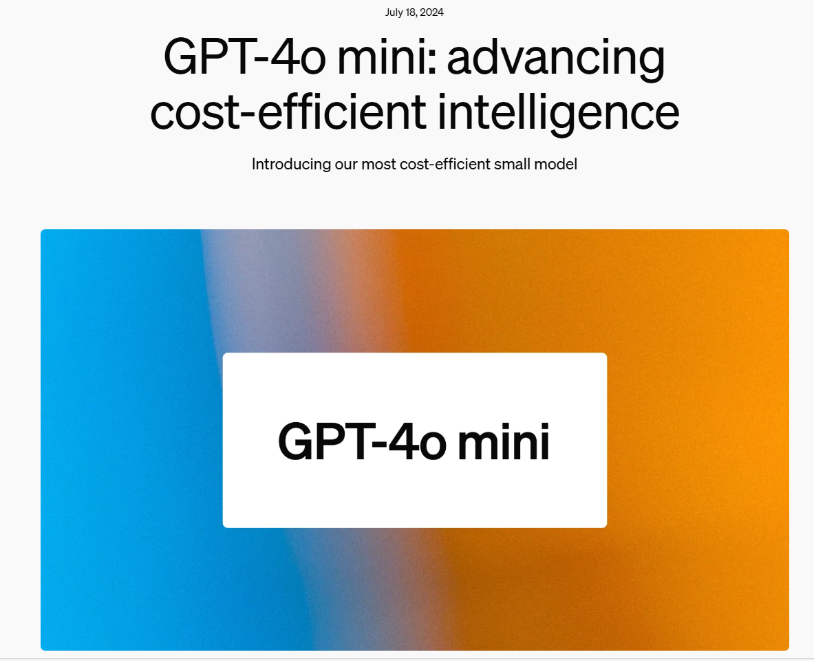 GPT-4o mini:コスト効率の高いインテリジェンスの進化 |OpenAI[1]