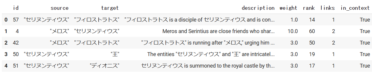 どちらの手法においても「メロスとセリヌンティウスが友人関係である」のような二人の関係性について説明できており、Langchain+Neo4jの方法に比べて詳細に述べられていることがわかります。Langchain+Neo4jではCypherクエリが単一であり一つのエンティティの組のみが参照されているのに対して、MicrosoftのGraphRAGでは様々なEntityやRelationshipが参照されています。