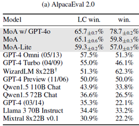 MoAw/ GPT-4oは、以前のトップであったGPT-4 Omniより 8.2point も精度が