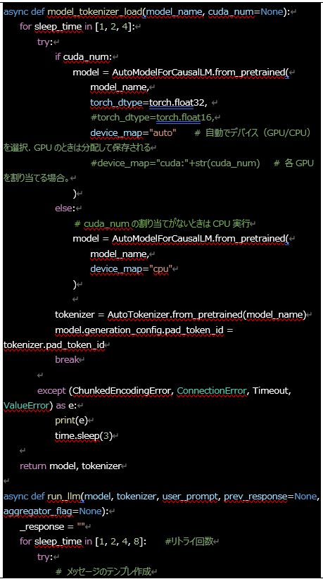 ◎修正コード(ローカルモデルの実行に必要な部分のみ記載)