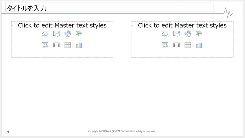 【図4】タイトル プレースホルダー + 2つのコンテンツ プレースホルダー
