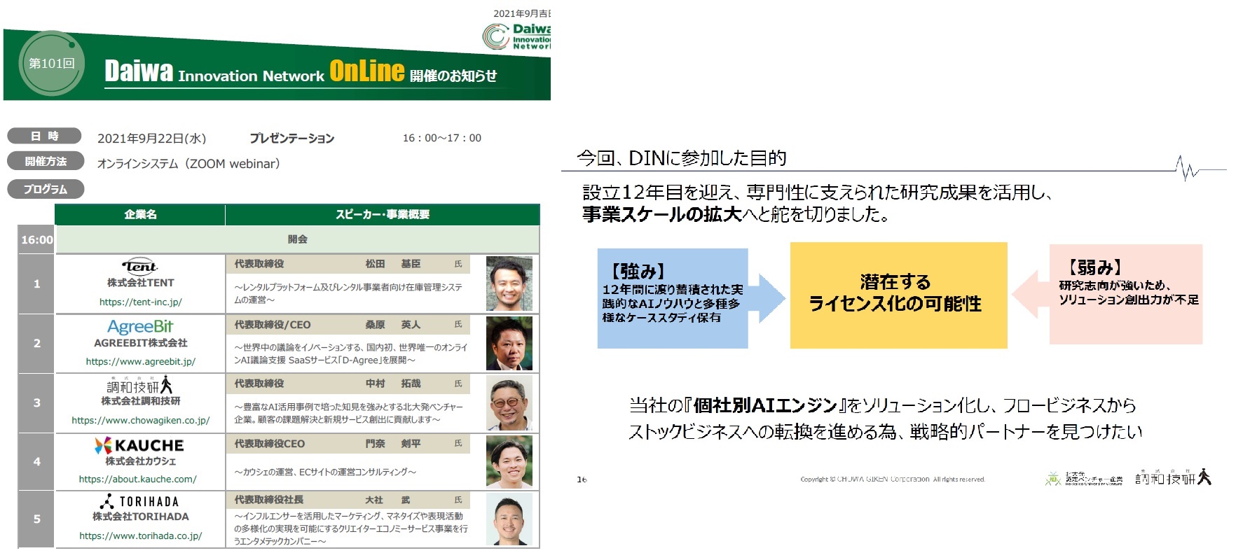 2021年9月22日に開催された、『第101回Daiwa Innovation Network』に、当社代表の中村が登壇いたしました。