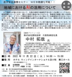 苫小牧で開催される産学官金連携セミナー「地域におけるAIの活用について」にて、中村(当社代表)が講師登壇いたします